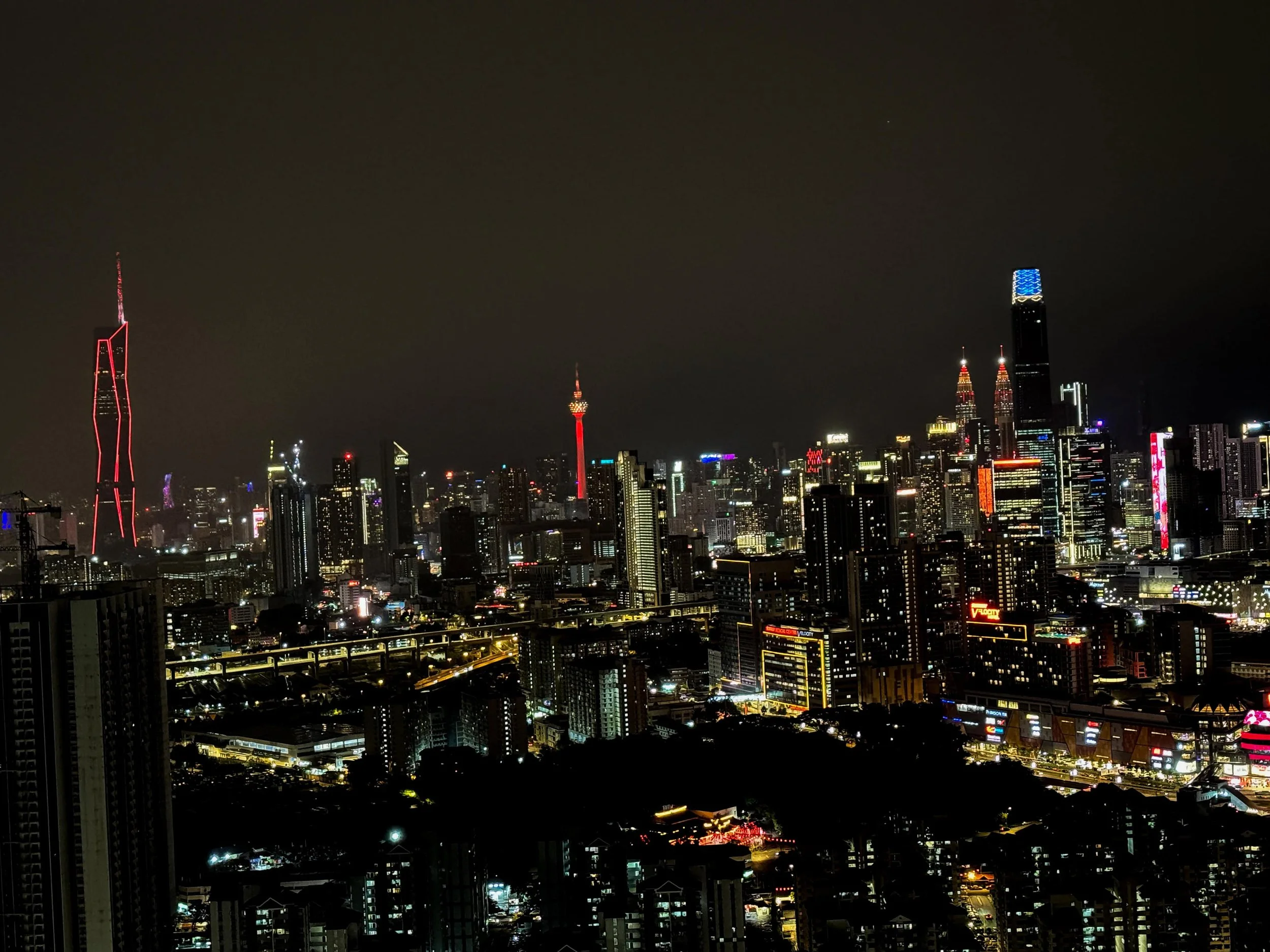 The beautiful nighttime skyline in Kuala Lumpur, Malaysia.