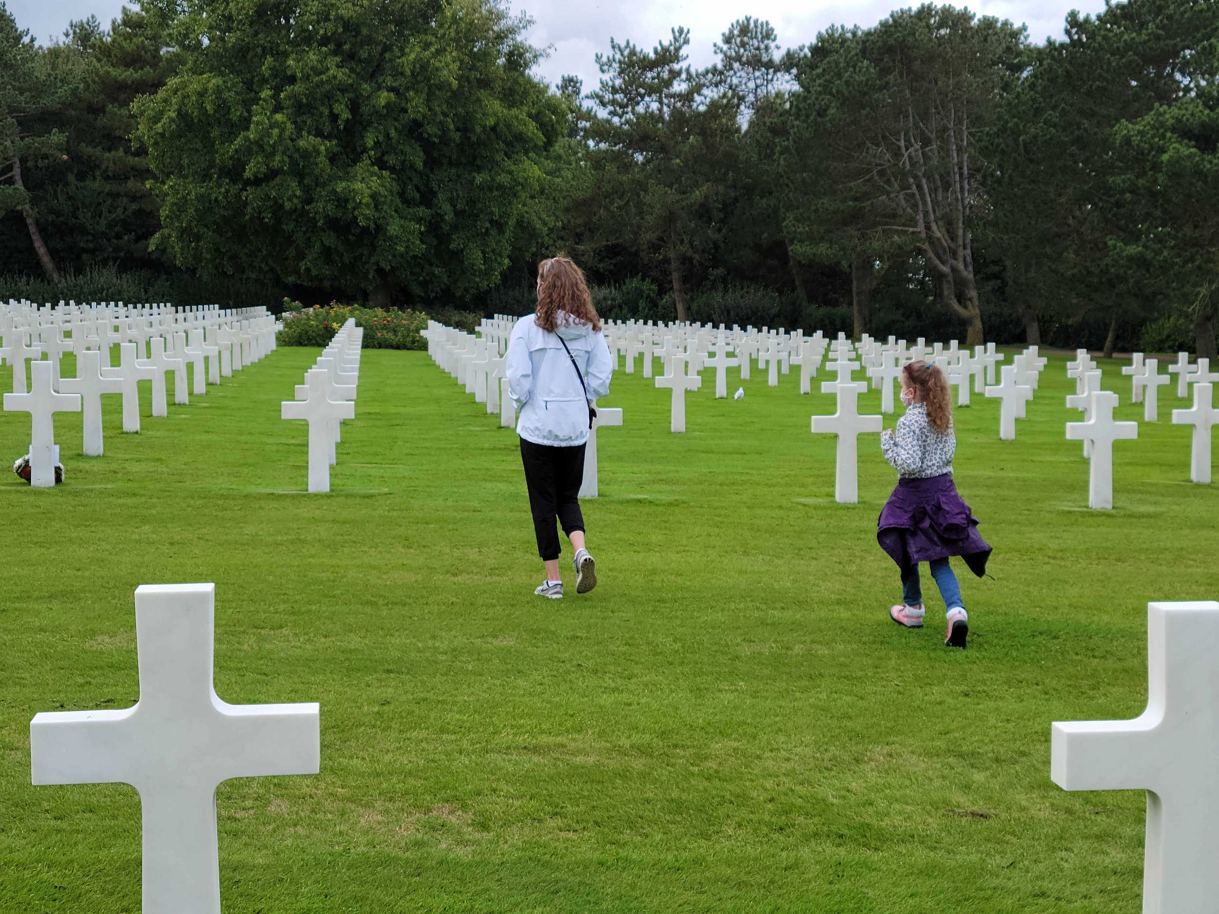 Our day began at the Musée Mémorial de la Bataille de Normandie in Bayeux. There was so much history to read about. Thankfully, alongside the French descriptions, there was an English translation of almost every display so that we could easily take in all that information. The girls learned about the generals, the plans, the preparation, and the work that went into Operation Overlord. They were surprised to learn that D-Day wasn’t just a one-day event but an operation that included multiple battles which raged on for 11 months before France was liberated! We walked among photographs, memorabilia, heavy equipment, and weapons that told the story of the events and their impact on Europe and the rest of the world. Our trip to the museum helped to put into perspective what we would see on the beaches and to understand the sacrifice made by those buried in the cemetery we would tour.