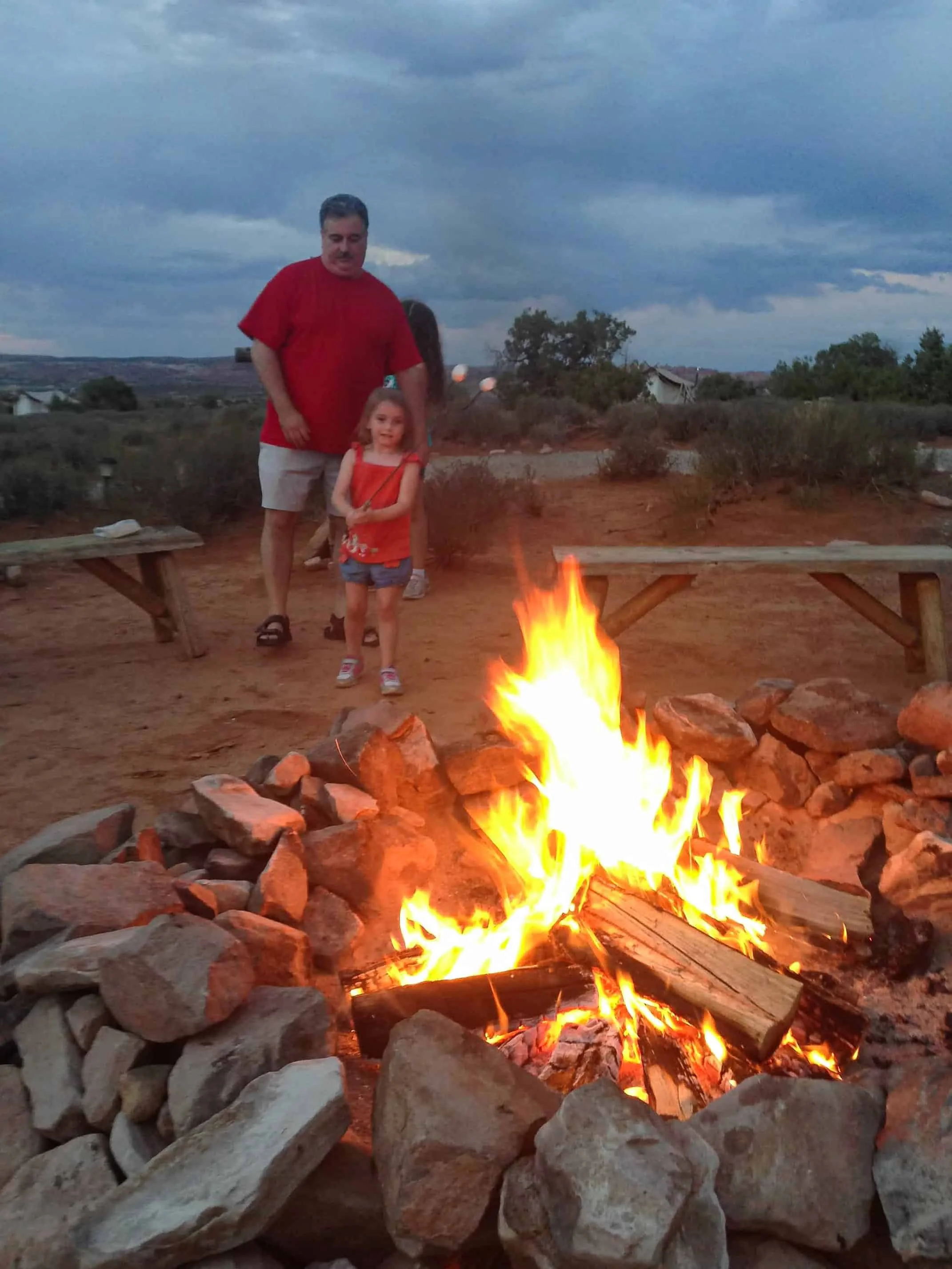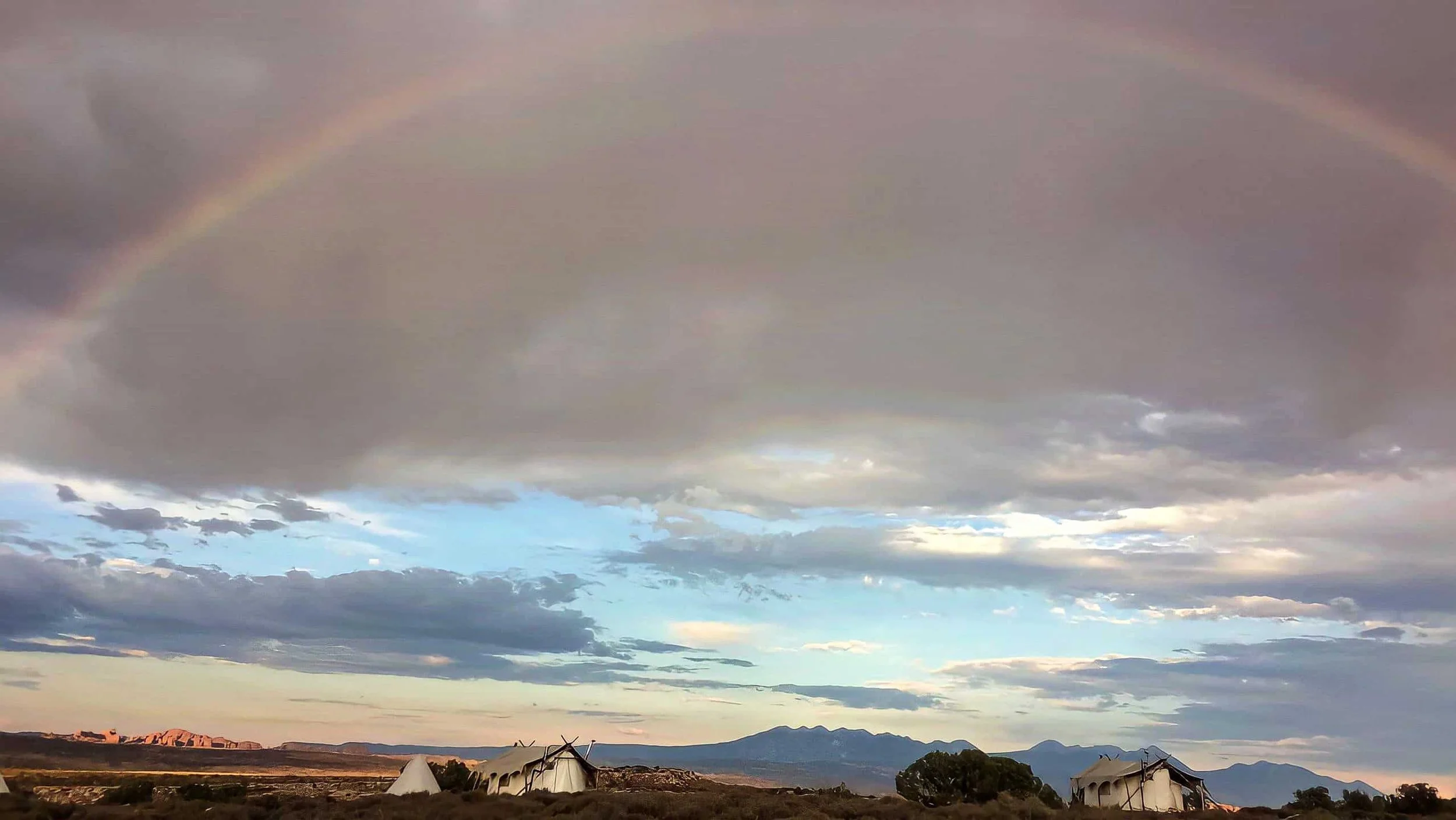 We were welcomed back to our campsite by a rainbow that made the setting sun and surrounding landscape even more remarkable. Several tiny rabbits were hopping around as we explored the campground and it was fun to watch them as we took in the beauty of our home for the night. We were delighted to learn that Under Canvas has a campfire each evening where they supplied all the ingredients and tools for s’mores. The girls had such fun roasting marshmallows and eating the sticky treats.