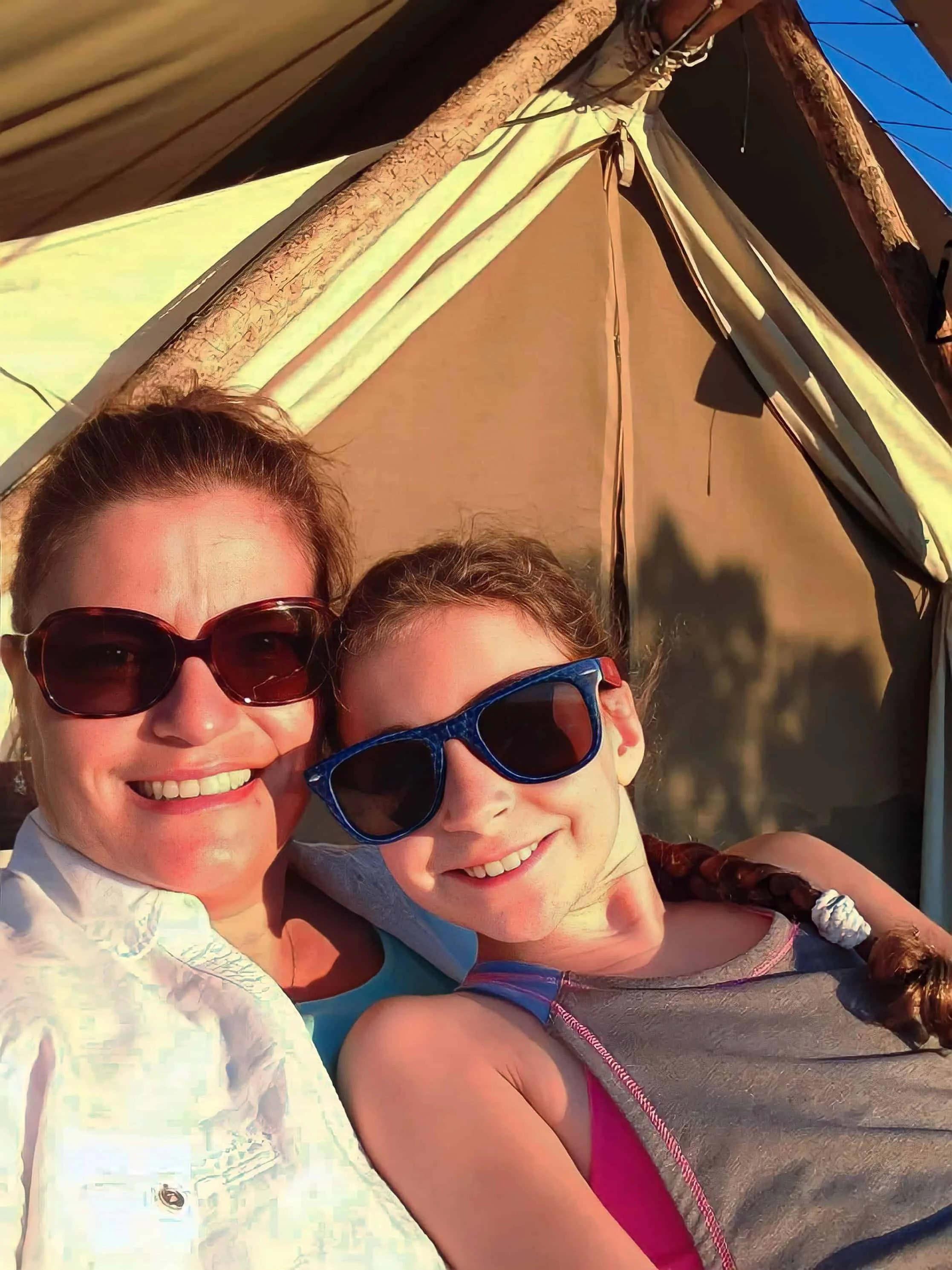While researching and planning the route for our “Big Trip,” Kevin discovered a place called Under Canvas that offered unique accommodations. The campground was located right down the street from the entrance to Arches National Park which was one of our must-see locations. He booked a reservation here to surprise the girls. The main, deluxe tent featured a king-sized bed, plenty of blankets and towels, and even a functioning bathroom, complete with a pull cord shower. Right next door was a very sturdy teepee with three comfy sleeping cots, one for each of the girls. It was a truly uncommon place to sleep!